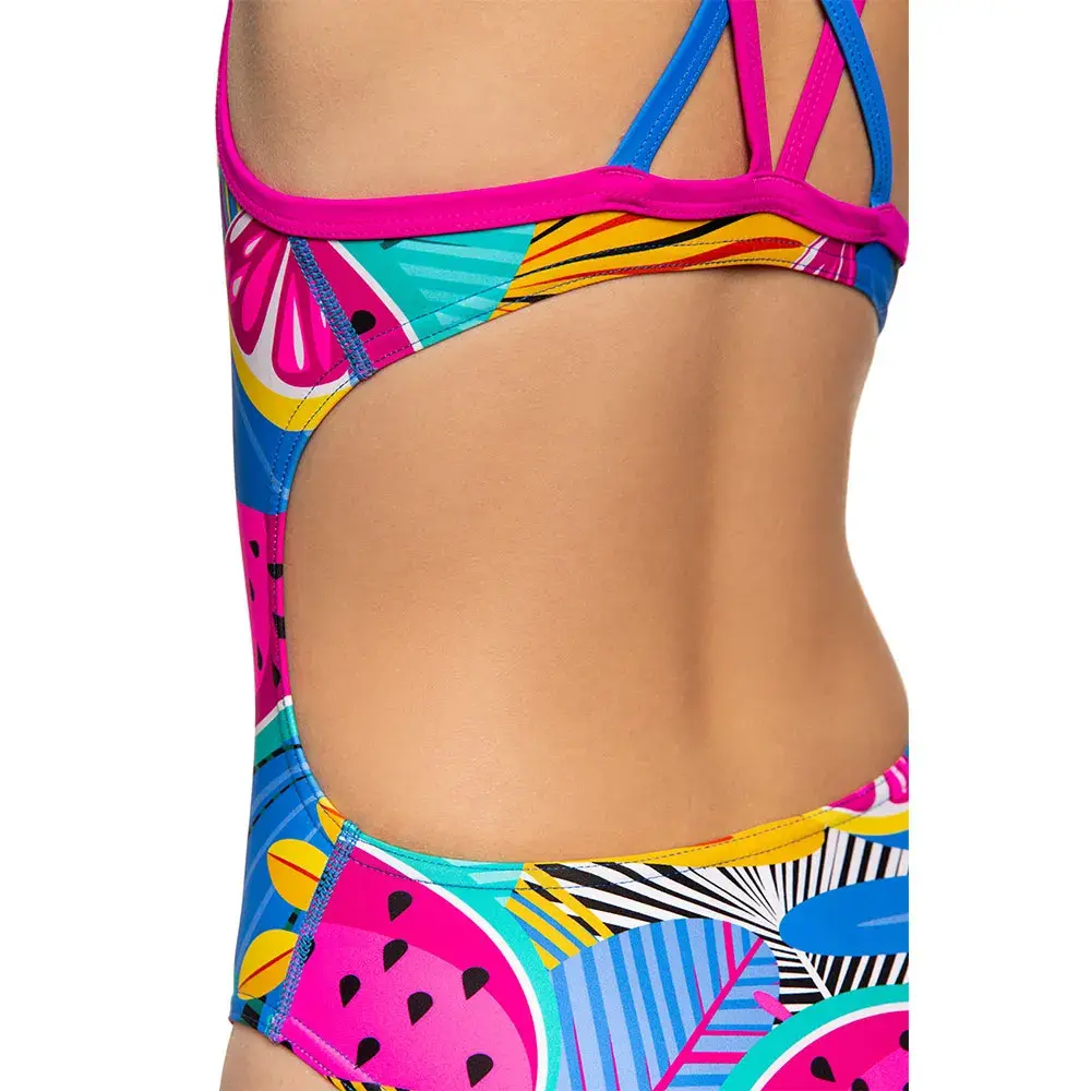Спортивный купальник Crossback junior с высоким вырезом до бедра подойдет как для регулярных тренировок, так и для активного отдыха на свежем воздухе.
