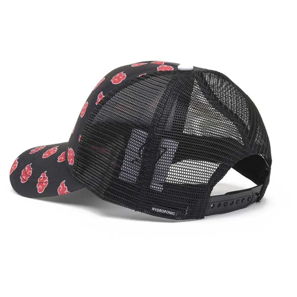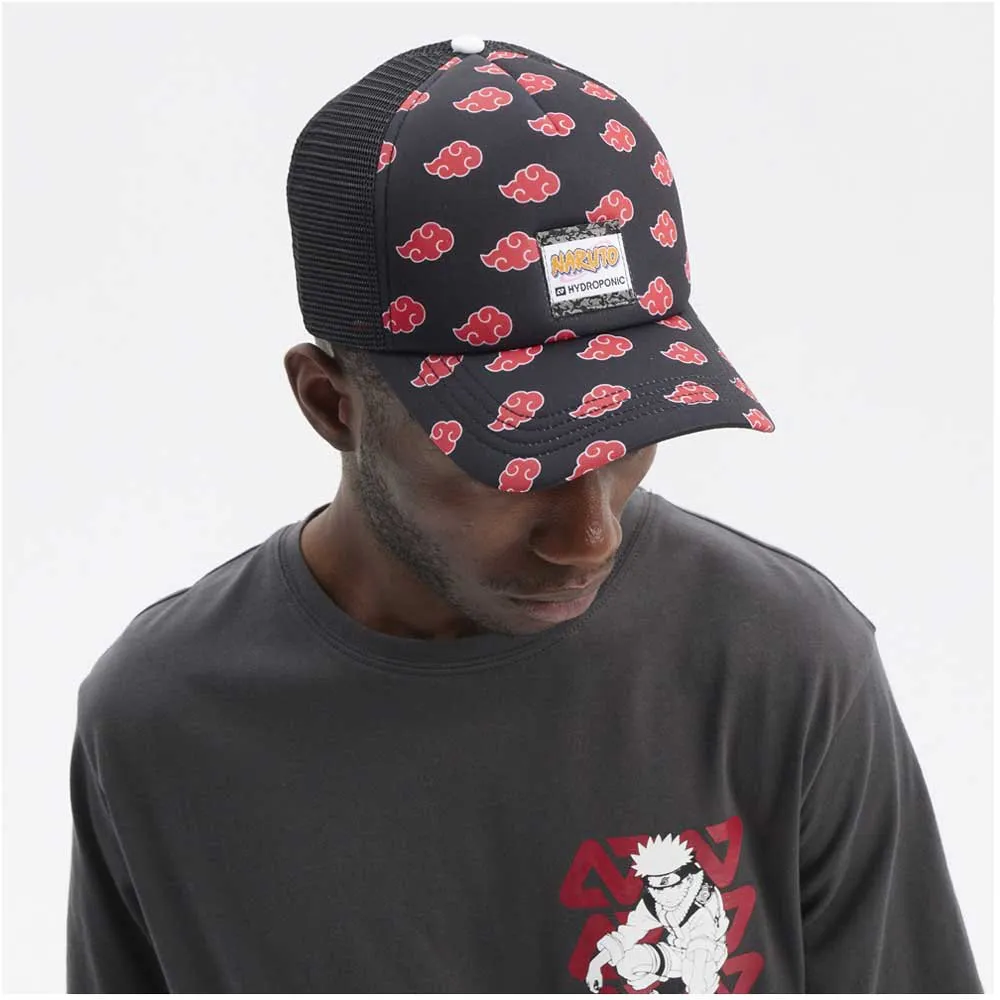 Кепка snapback из 5 панелей из официальной коллаборации Naruto X Hydroponic с глубоким вырезом, изогнутым козырьком и специальным цифровым принтом Naruto с изображением красного облака, символизирующего кровавый дождь, пролитый в деревне Амегакуре во время Войн ниндзя.