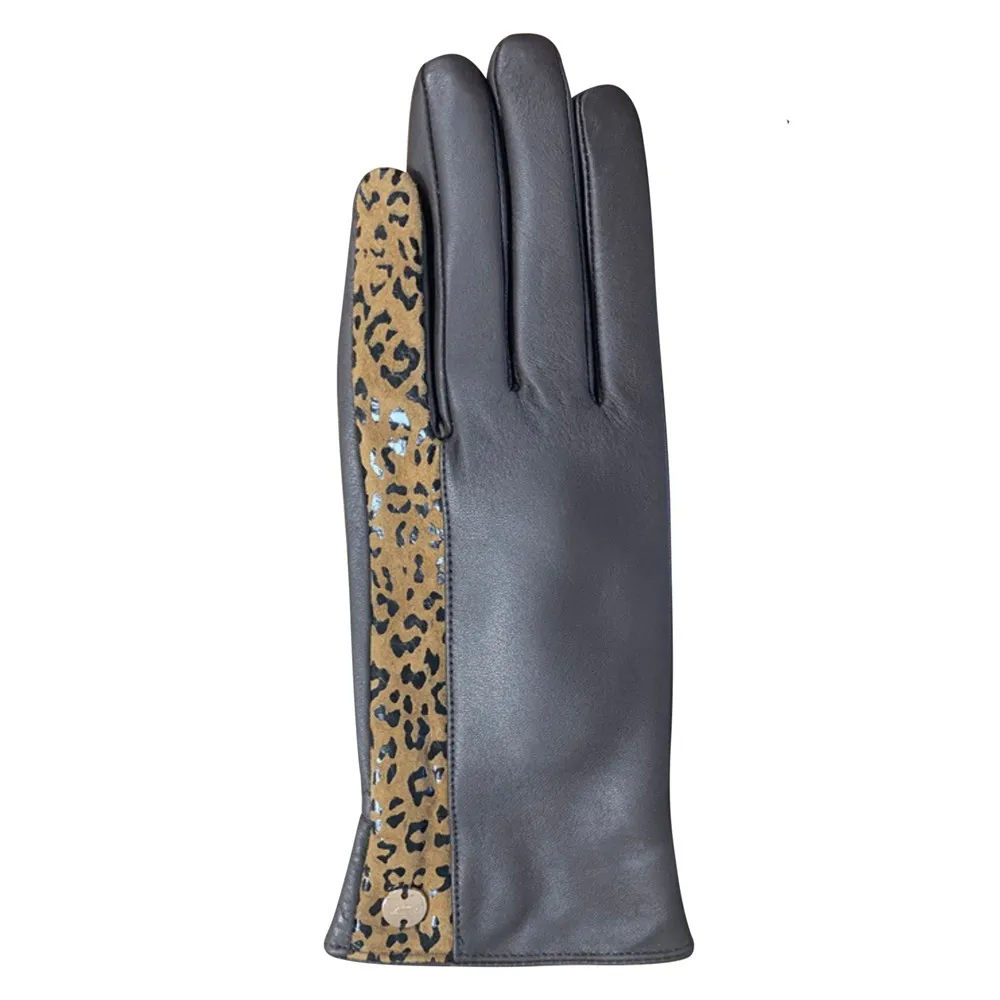 Перчатки ACHY сочетают в себе элегантность и оригинальность. Изготовленные из гладкой кожи, они имеют эластичный манжет для удобной посадки на запястье и простой, шикарный дизайн. Внешняя сторона украшена контрастной лентой из леопардовой кожи с эффектом пони, придающей образу дикую женственность. Идеально подходит для создания изысканного образа с помощью смелых деталей.