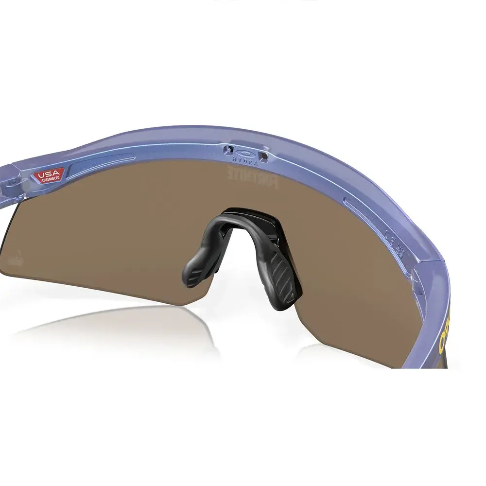 OakleyB продолжает свое наследие в области серфинга с помощью Hydra, солнцезащитных очков без оправы и защитных линз в стиле бритвенных лезвий. Модель Hydra с логотипом Oakley B1B на висках подчеркивается современным дизайном спускового крючка, напоминающим о бритвенных лезвияхВґ истоки в культуре серфинга. Оправа BiO-MatterB* на растительной основе и трехточечная подгонка обеспечивают сбалансированную посадку и комфорт, а технология линз prizmв„ улучшает цветопередачу и контрастность. BiO-Matter изготовлен из биоматериалов с содержанием углерода на основе био не менее 56% (что соответствует соотношению касторового масла к ископаемым источникам)