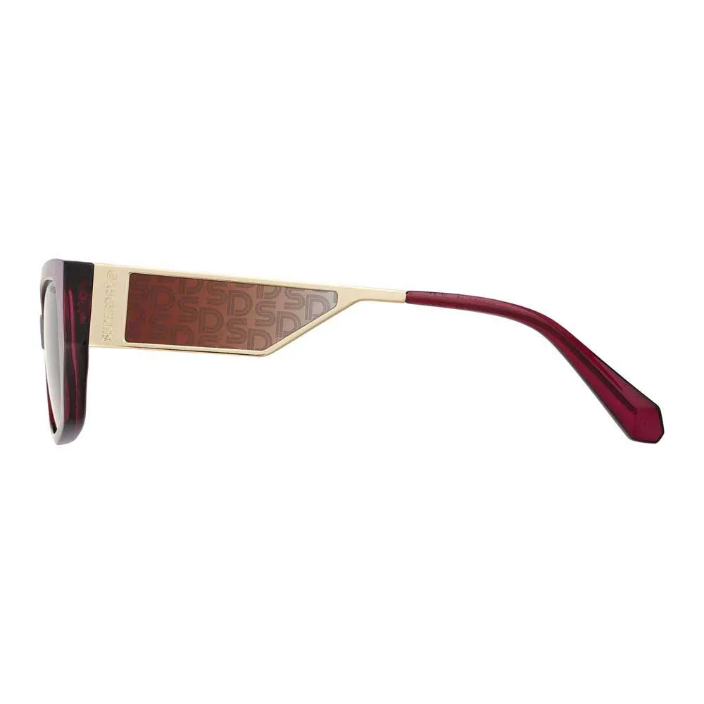 Тонкие скосы внутренних оправ и линз в тон сочетаются с глубокими металлическими дужками со вставками в тон линз и выгравированной лазером монограммой Superdry.