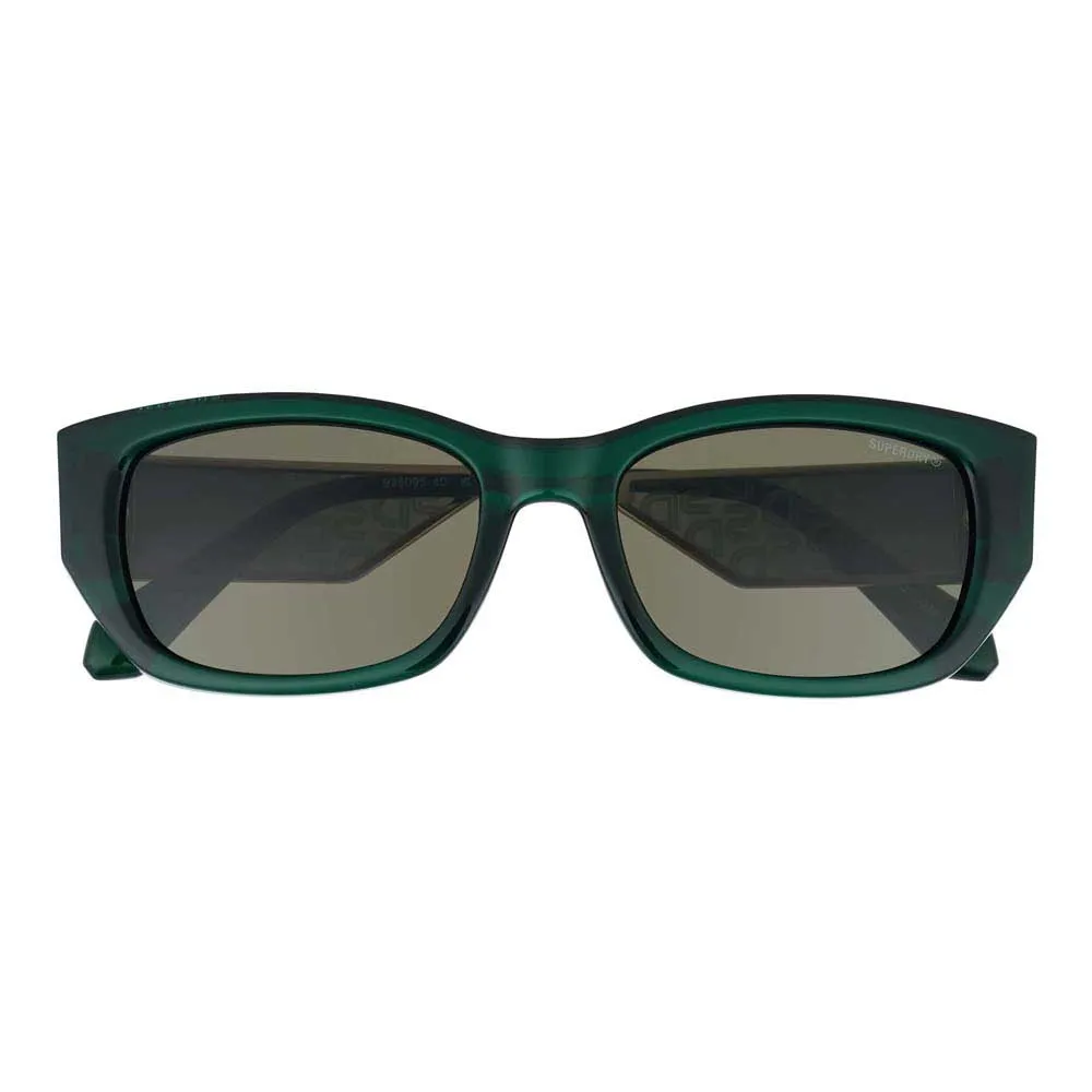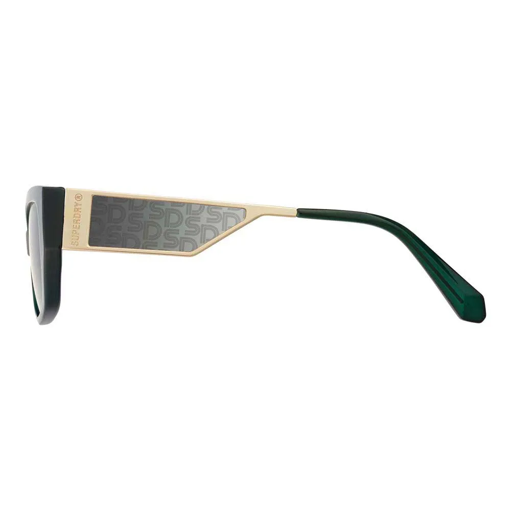 Тонкие скосы внутренних оправ и линз в тон сочетаются с глубокими металлическими дужками со вставками в тон линз и выгравированной лазером монограммой Superdry.