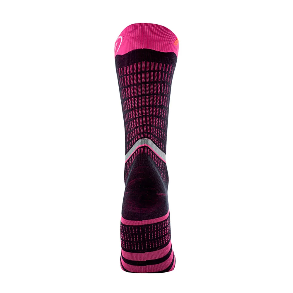 Эти носки, предназначенные как для ски-тура, так и для активного отдыха, разработаны для снижения риска образования мозолей и отвода влаги во время скалолазания. Полоска цепкой нити над лодыжкой улучшает контакт носков с кожей, создавая эффект второй кожи.