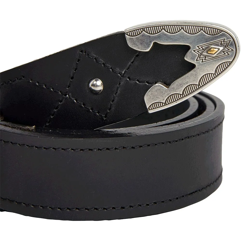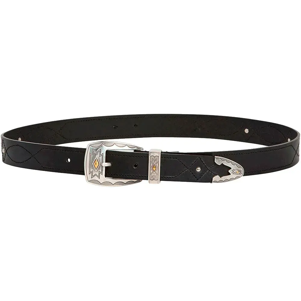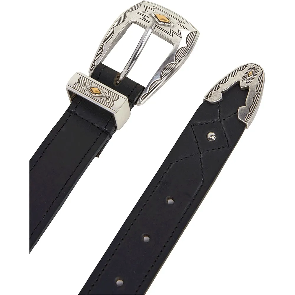 Кожаный ремень Dakota с текстурированной и двухцветной пряжкой, петлей и концевым наконечником, строчками, маленькими круглыми заклепками и металлической пластиной с классическим логотипом.