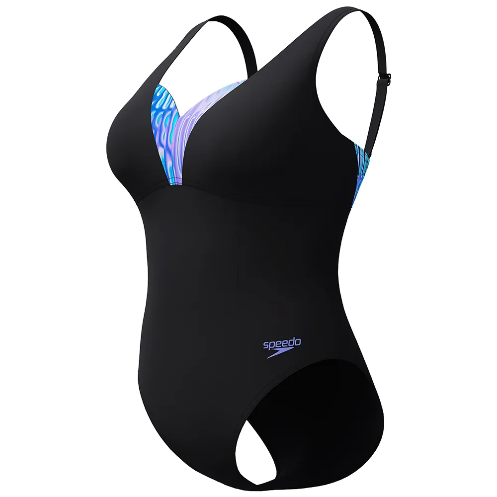 Откройте для себя идеальное сочетание стиля, комфорта и уверенности в слитном купальнике Speedo Shaping Printed OpusGem DD+. Этот купальник, разработанный экспертами для женщин, которые ценят элегантность и превосходную поддержку, является шедевром индустрии купальных костюмов. Потрясающий принт OpusGem, представленный в изысканной палитре синего и фиолетового, гарантирует, что вы будете выглядеть так же фантастически, как и чувствовать себя, независимо от того, отдыхаете ли вы у бассейна, наслаждаетесь днем в спа или плаваете.