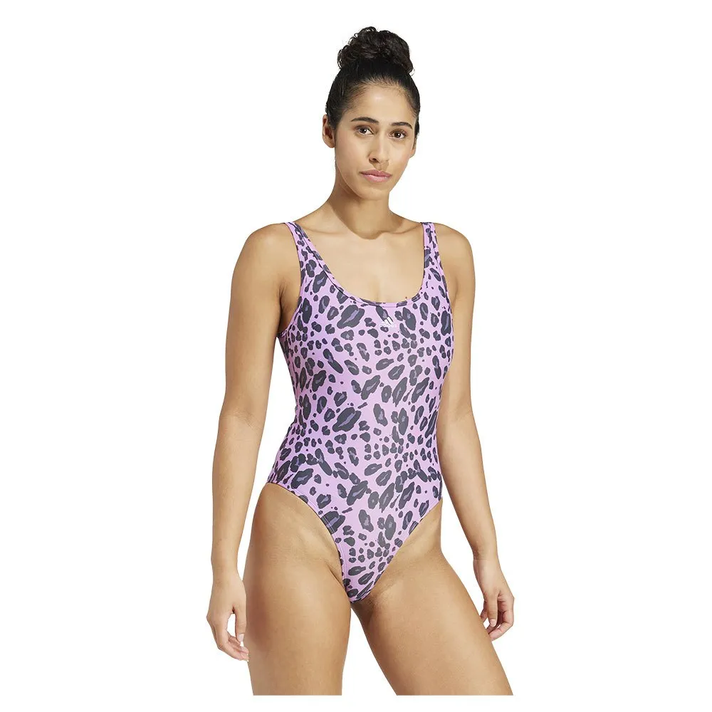 Купальник adidas Essentials Animal Print U Back, фиолетовый