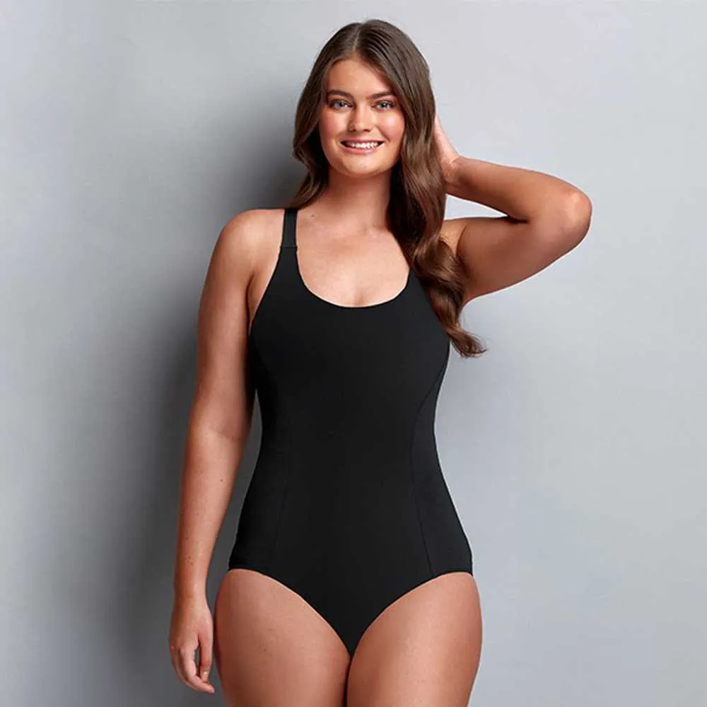 Классический слитный купальник с облегающими боковыми вставками в стиле принцессы и заниженной линией бедра. Широкие, удобные перекрещивающиеся бретельки на спине и миниатюрный вырез-замочная скважина делают эту модель идеальной для активного образа жизни. Спереди подкладка из сетки Powermesh, бюстгальтер-полка, чашки с подушечками и карманы после мастэктомии. Чашечка DD - E.