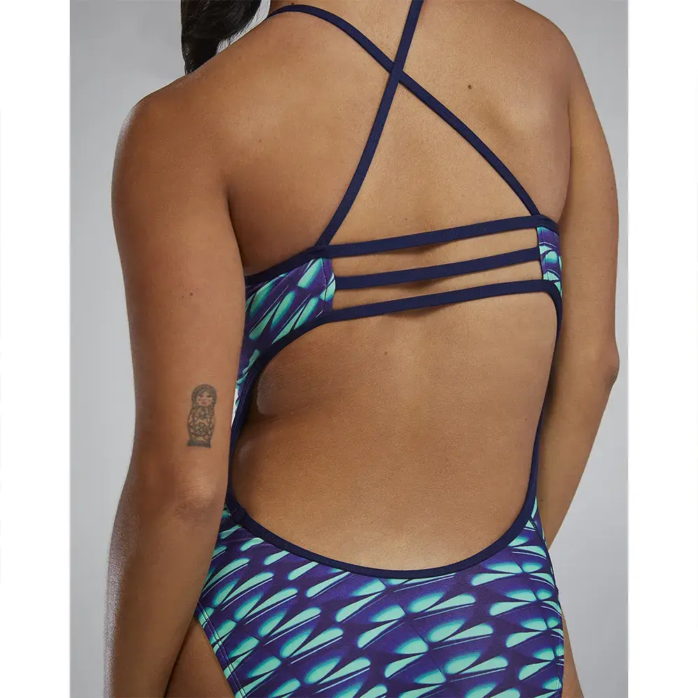 Тонкие бретельки этого купальника обеспечивают минимальное сопротивление и максимальную гибкость, обеспечивая полную свободу движений в плечах и руках. Их перекрещивающаяся на спине конструкция обеспечивает дополнительную поддержку и надежную посадку, гарантируя, что костюм останется на месте даже во время самых интенсивных тренировок. Вы можете сосредоточиться на своей технике и результатах, не беспокоясь о отвлекающих факторах или дискомфорте.