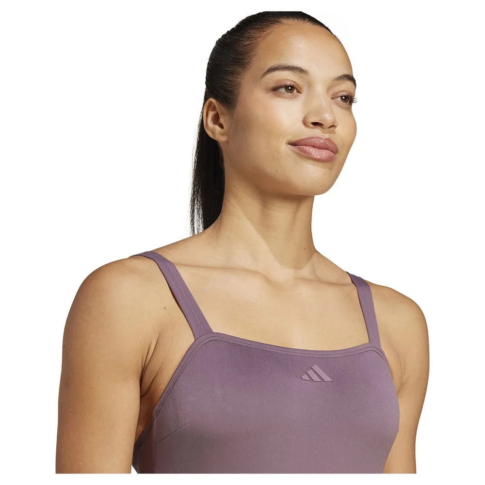 Он оснащен внутренним бюстгальтером со съемными подушечками для средней поддержки и культовым логотипом adidas 3-Bar по центру спереди на груди.