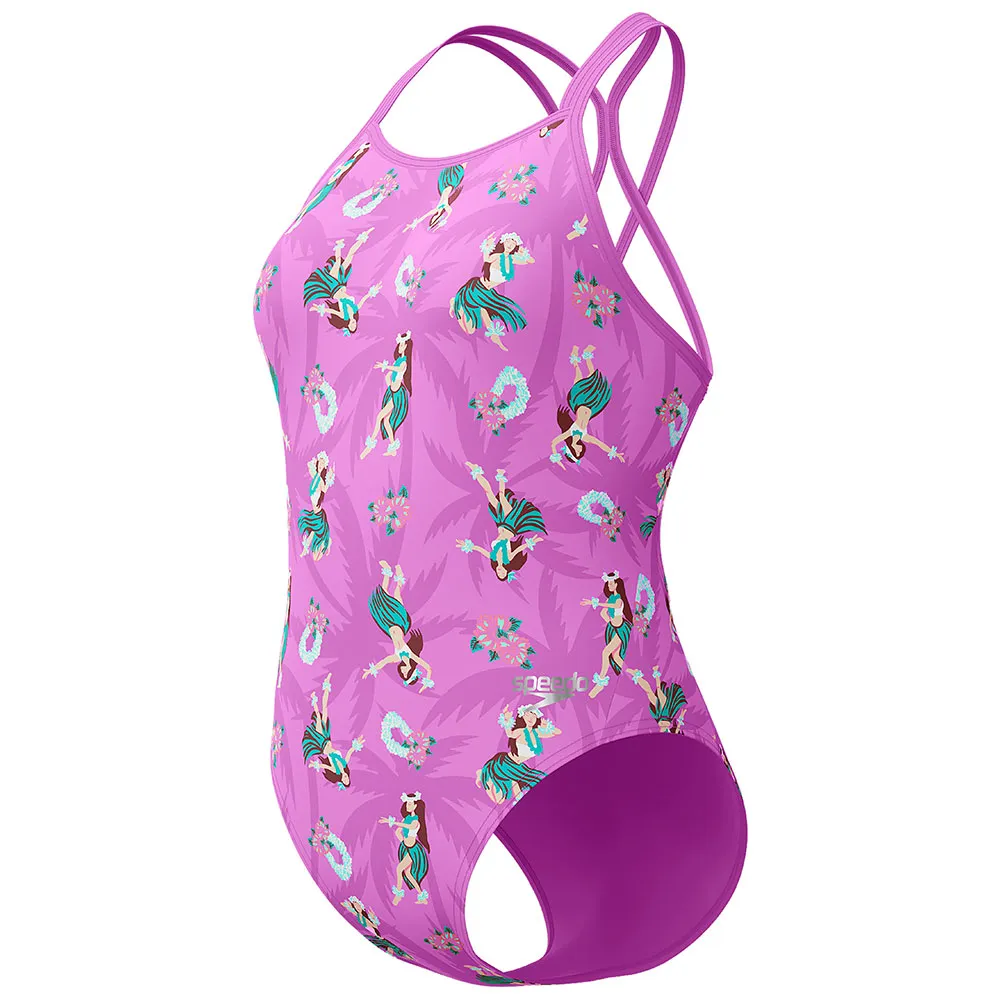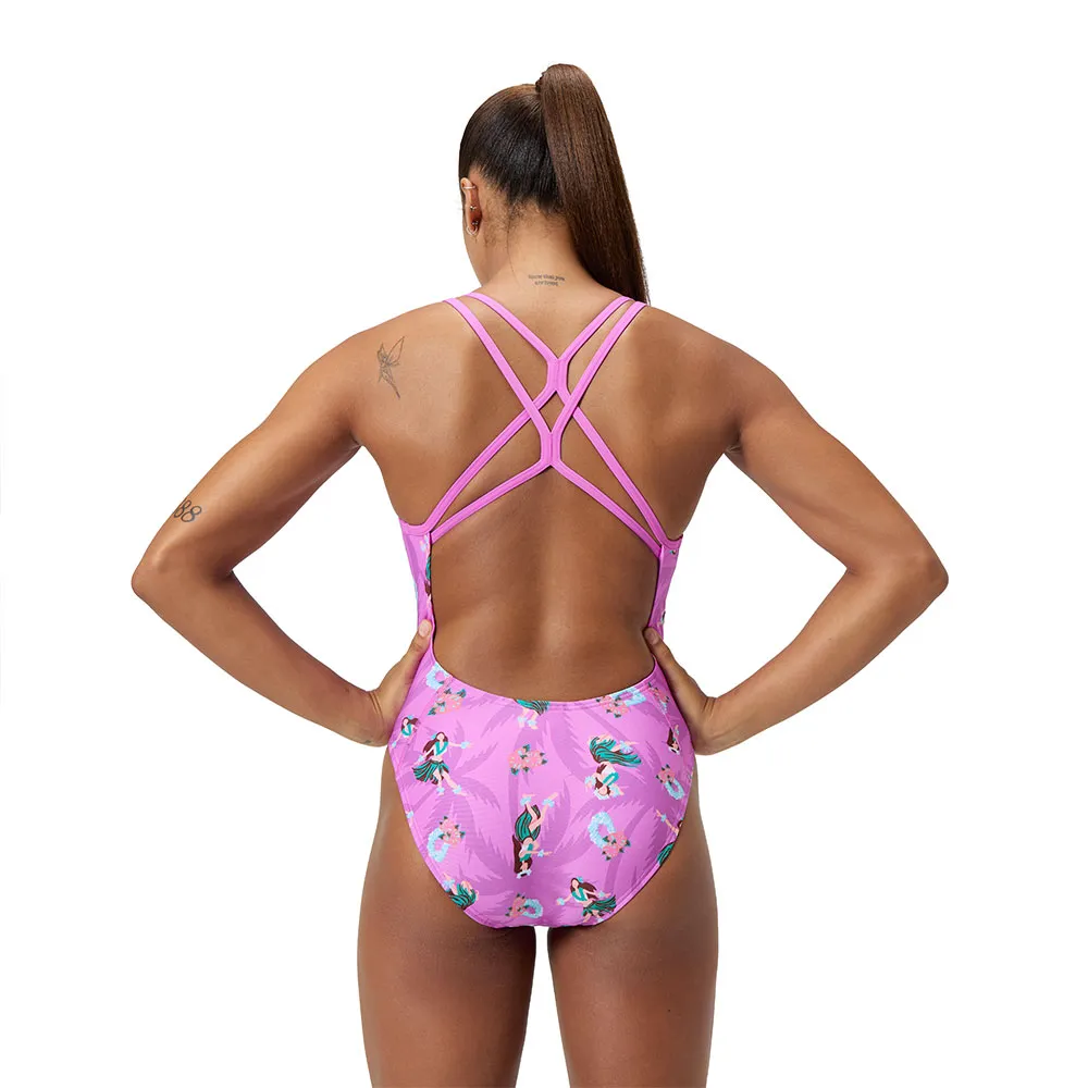 Почувствуйте расслабленную атмосферу острова, выполняя упражнения в нашем ярком купальнике Starback с принтом хула-девушки.