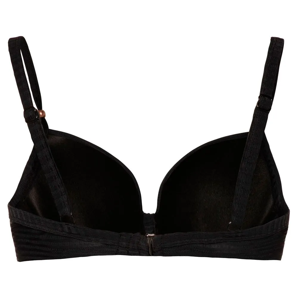 Этот фантастический топ-бикини выполнен из структурированной черной ткани.