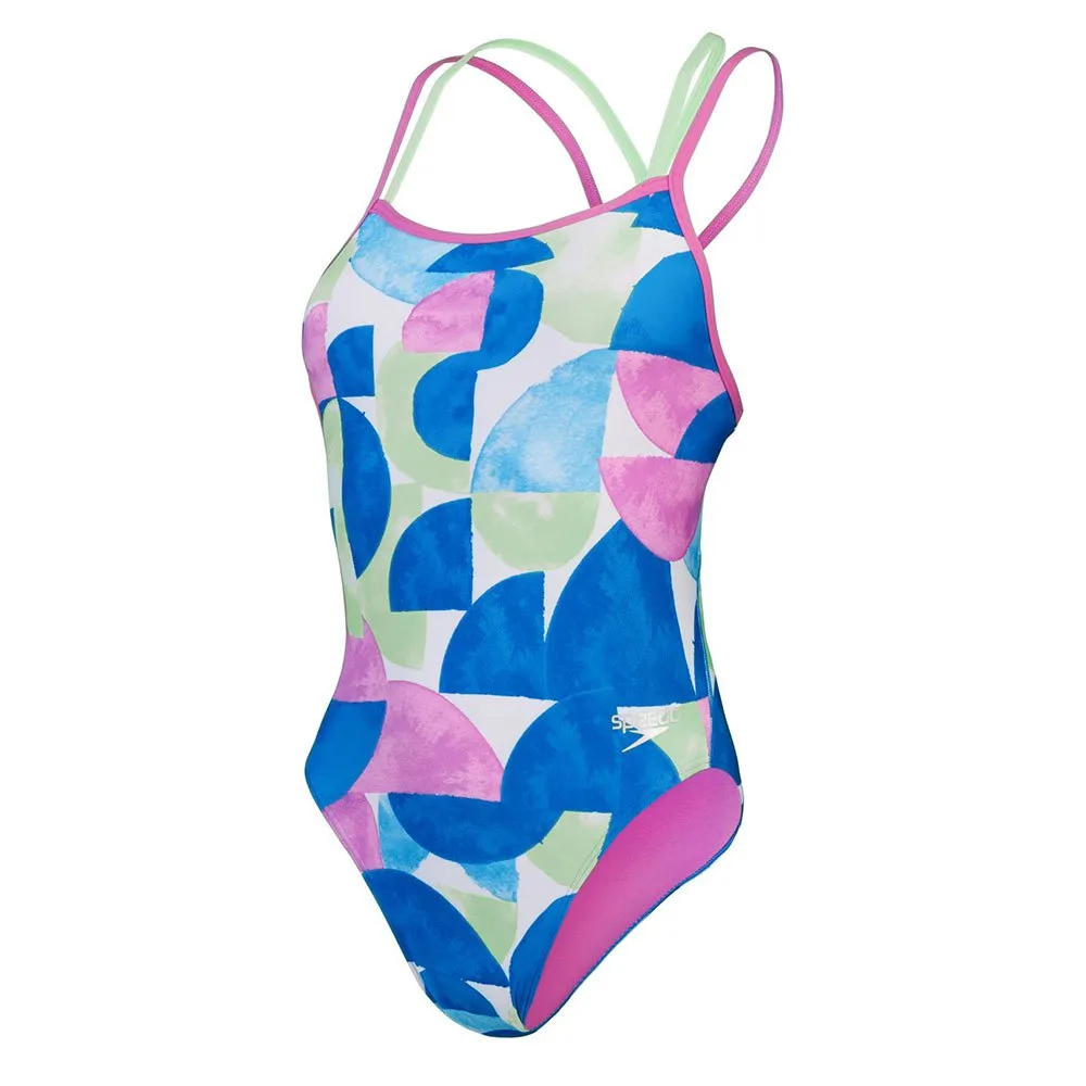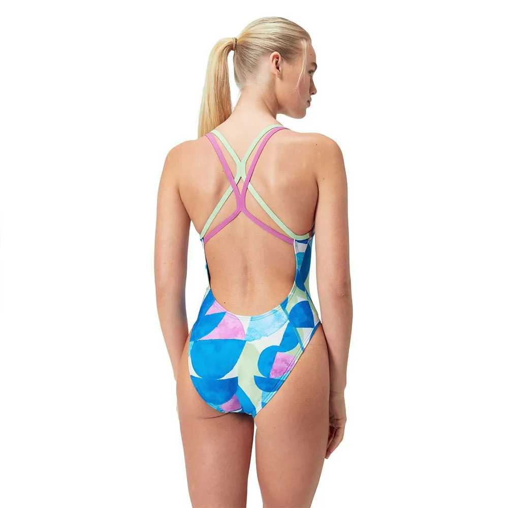 Преподнесите своей команде по плаванию урок стиля, выполняя упражнения, как рыба в воде, в нашем новом купальнике Geo Dome со спинкой в форме звезды и художественным геометрическим принтом.