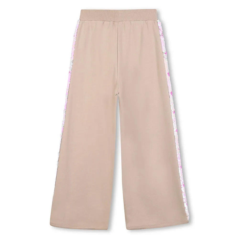 Настоящей изюминкой этих брюк в стиле урбанистического шика являются великолепные полоски с блестками, спускающиеся по бокам. Эта привлекательная деталь улавливает свет при каждом шаге, прыжке и кружении, добавляя переливающийся каскад веселья и индивидуальности ее наряду. Фирменная изюминка Billieblush превращает брюки из простой одежды для отдыха в универсальную модную вещь. Она может легко сочетать их с простой футболкой и кроссовками для создания стильного повседневного образа или дополнить уютной толстовкой с капюшоном для создания идеального городского ансамбля. Для особого случая их можно даже надеть со стильным верхом, доказав, что комфорт и стиль, подходящий для вечеринки, могут идти рука об руку. Сдержанный фирменный знак служит окончательным свидетельством качества и аутентичного дизайна.