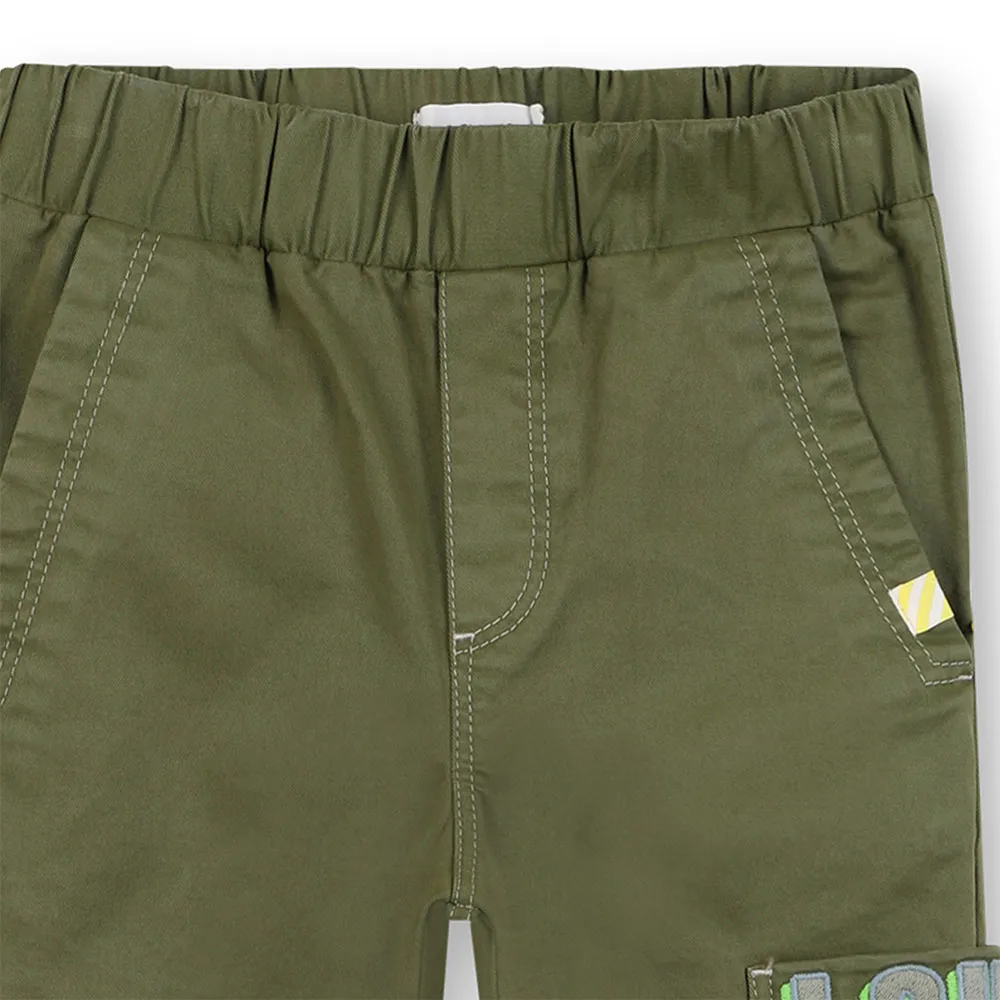 Брюки из саржи, 4 кармана, эластичный пояс, декоративная вышивка на боковом кармане, этикетка.