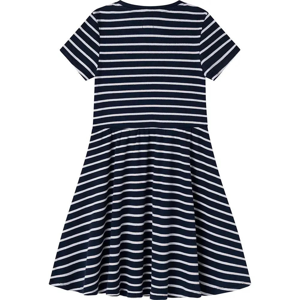 Облегающее трикотажное платье в полоску с коротким рукавом.