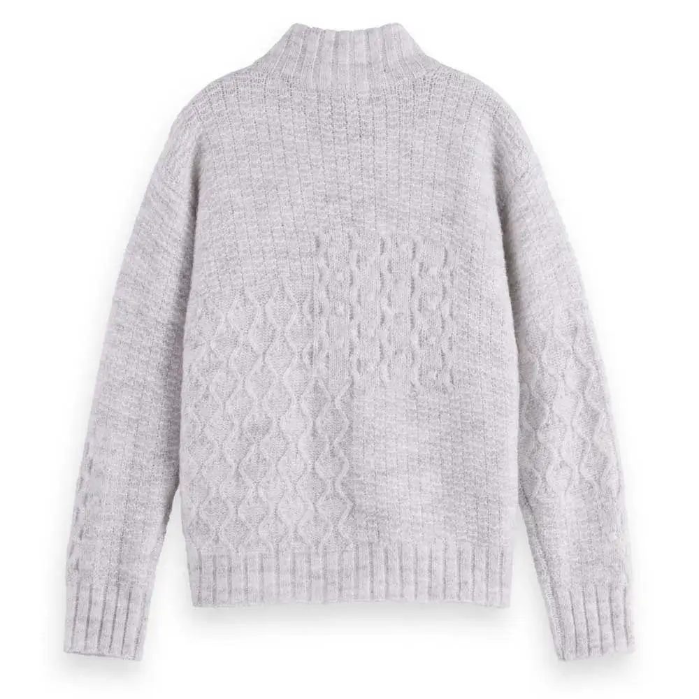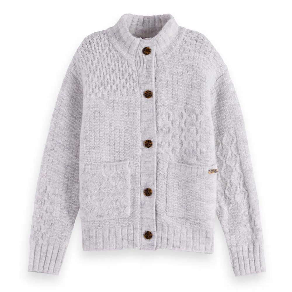 Откройте для себя идеальное сочетание игривого дизайна и роскошного комфорта с кардиганом SCOTCH & SODA в стиле пэчворк из смеси меланжа и альпаки для девочек. Этот изысканный свитер - больше, чем просто предмет одежды; Это заявление о стиле и уютное объятие, созданное для юной модницы, которая любит выражать свою неповторимую индивидуальность. Укутайте ее в исключительное тепло и мягкость, которые может обеспечить только высококачественный трикотаж из смеси альпаки, что сделает его незаменимым дополнением к ее осенне-зимнему гардеробу.