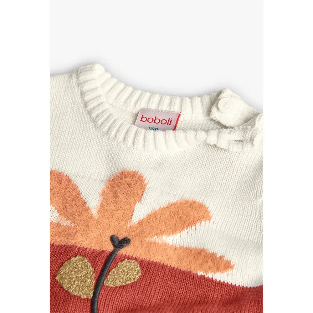 Платье для девочек с жизнерадостным цветочным принтом в кремовых, бордовых, оранжевых и розовых тонах.