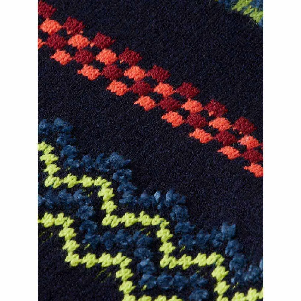 Отличительной чертой этого исключительного изделия является замысловатый жаккардовый трикотаж. В отличие от простого принта, жаккардовая техника вплетает яркий, праздничный узор непосредственно в саму ткань. Это создает богатый текстурированный дизайн с невероятной глубиной и характером, который одновременно ошеломляет визуально и удивительно приятен на ощупь. Праздничный мотив привлекает внимание, но не подавляет, обеспечивая идеальный баланс между энергией молодости и утонченным вкусом. Это носимое произведение искусства, демонстрирующее безупречное мастерство и внимание к деталям, гарантирующее, что ваш мальчик будет выделяться по всем правильным причинам.