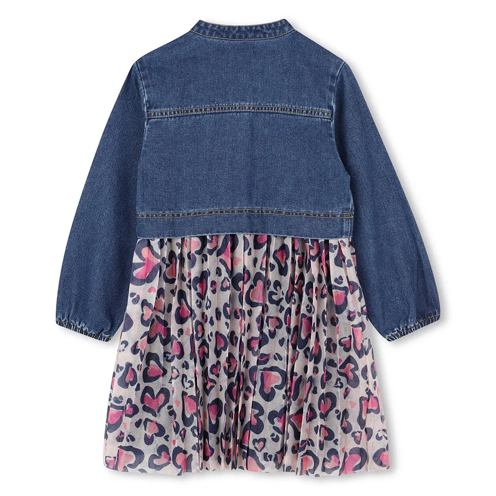 Искусно сшитый, этот предмет одежды создает иллюзию комплекта из двух частей с простотой цельного платья. Дизайн сосредоточен на его продуманной конструкции. Платье с длинным рукавом из двух материалов, верх из денима, внизу леопардовый принт по всей длине.