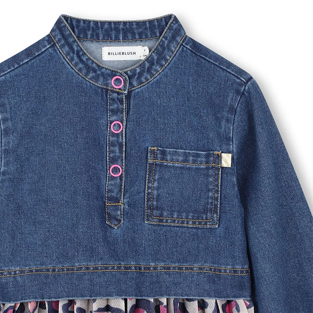 Верхняя часть создает классическую атмосферу крутой девушки благодаря аутентичному джинсовому образу, напоминающему любимую джинсовую рубашку. Практичная застежка на пуговицы спереди не только подчеркивает аутентичный стиль, но и упрощает процесс одевания. Дизайн с длинным рукавом делает это платье универсальным выбором для непогоды, обеспечивая комфортное прикрытие в прохладные осенние или весенние дни.