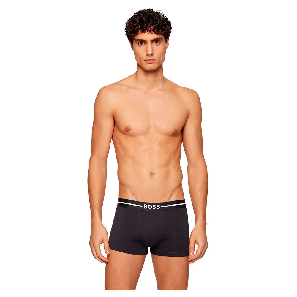 Три комплекта плавок прямого кроя от BOSS, изготовленных из 95% органического хлопка для более ответственного подхода к производству.