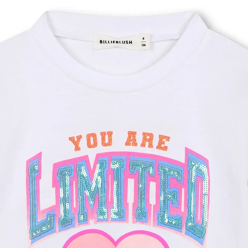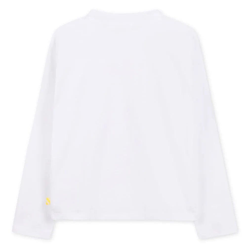 Трикотажная футболка из 100% хлопка, длинные рукава, круглый вырез, фантазийная иллюстрация тушью, блестящие чернила и пайетки, этикетка.