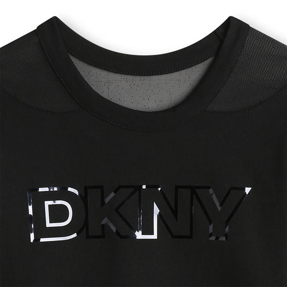 Спереди рельефно напечатана иллюстрация DKNY с зеркальным эффектом.
