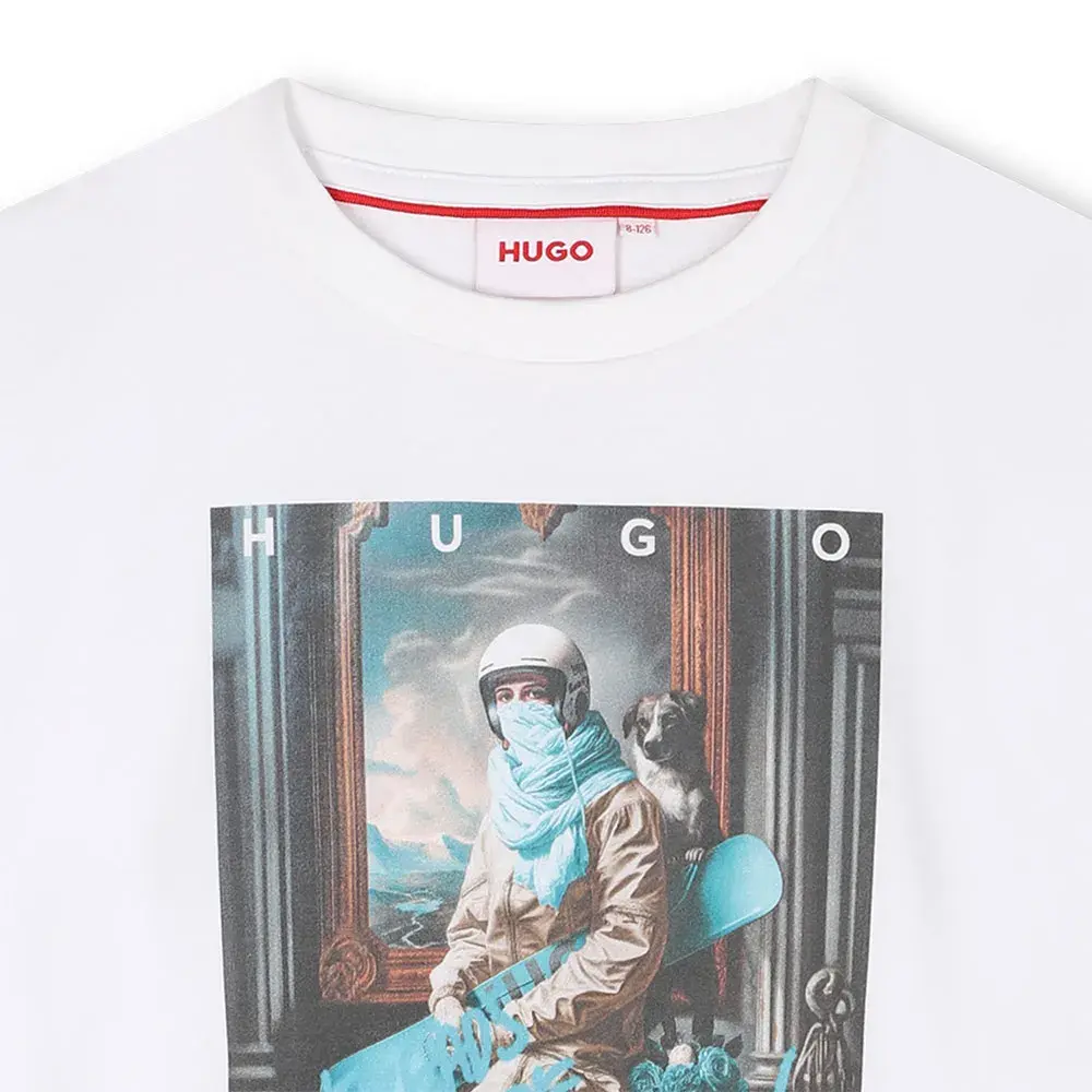 Футболка с короткими рукавами из 100% органического хлопка с фантазийным изображением сноубордиста спереди.