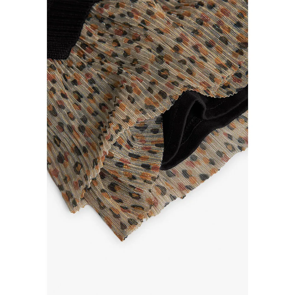 Сшитое из мягкой ткани, оно украшено элегантным цветочным рисунком в коричневых и бежевых тонах по низу, придающим ему особый колорит.