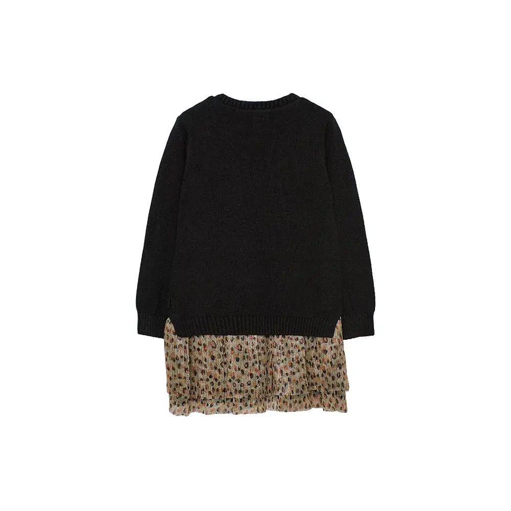Черное трикотажное платье с цветами, идеально подходящее для девочек в осенне-зимний сезон, обеспечивающее тепло и стиль.