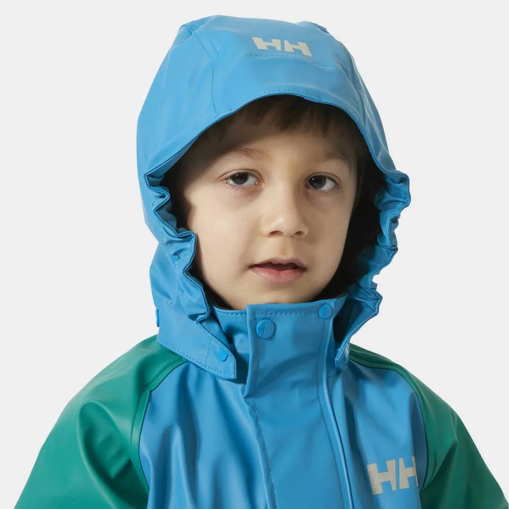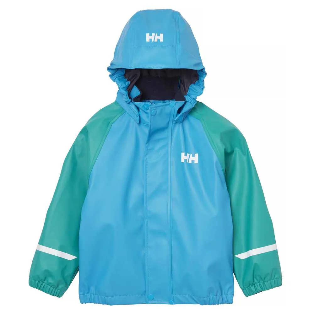 Сварные швы, прочная передняя молния YKKB с штормовым клапаном  и быстросохнущая внутренняя часть обеспечивают детям дополнительное укрытие от непогоды.