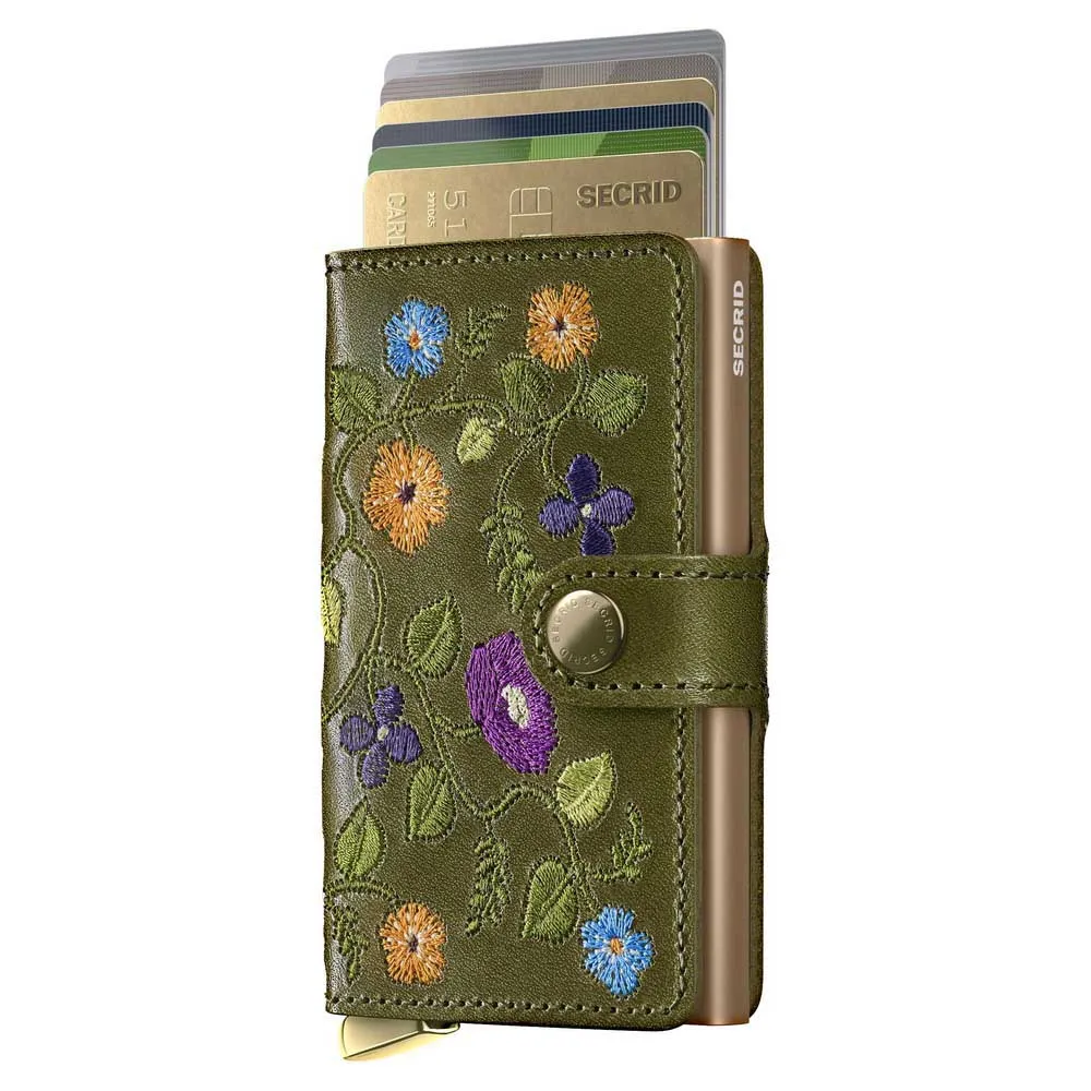 Кошелек Secrid Miniwallet Stitch Floral leather, зеленый