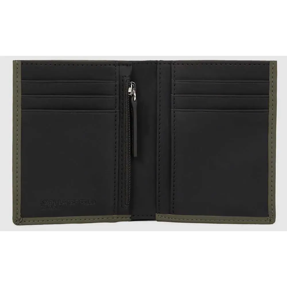 Стиль и функциональность сочетаются в этом элегантном двустворчатом кошельке с несколькими отделениями для карт и кошельком для монет на молнии. Изделие выполнено из технической кожи с покрытием и украшено ярким логотипом Karl Lagerfeld Jeans.