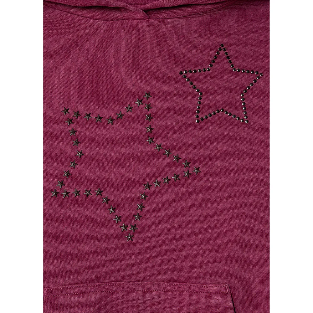 Длинная свободная толстовка с рисунком в виде звезды, украшенная заклепками.