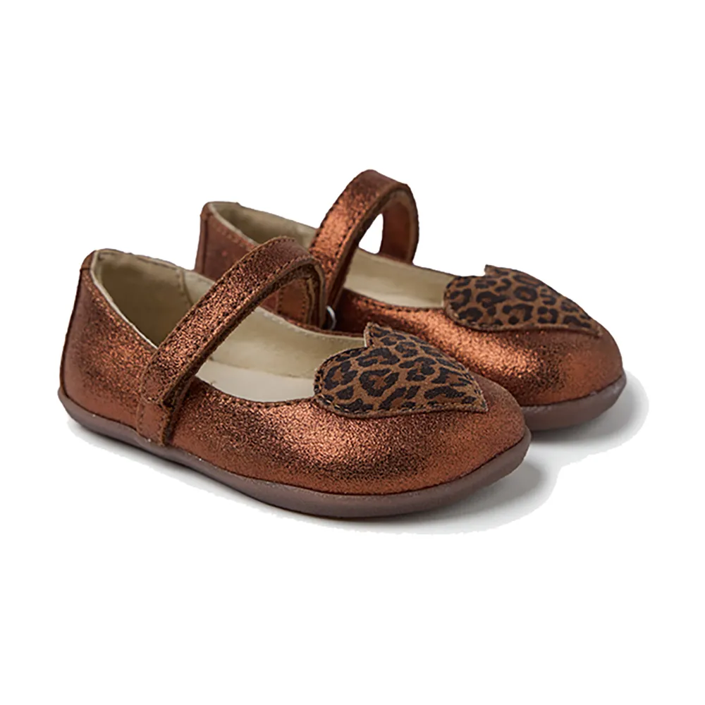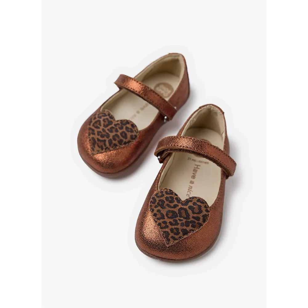 Замшевые балетки с блестящей отделкой и украшением в виде сердца с леопардовым принтом.