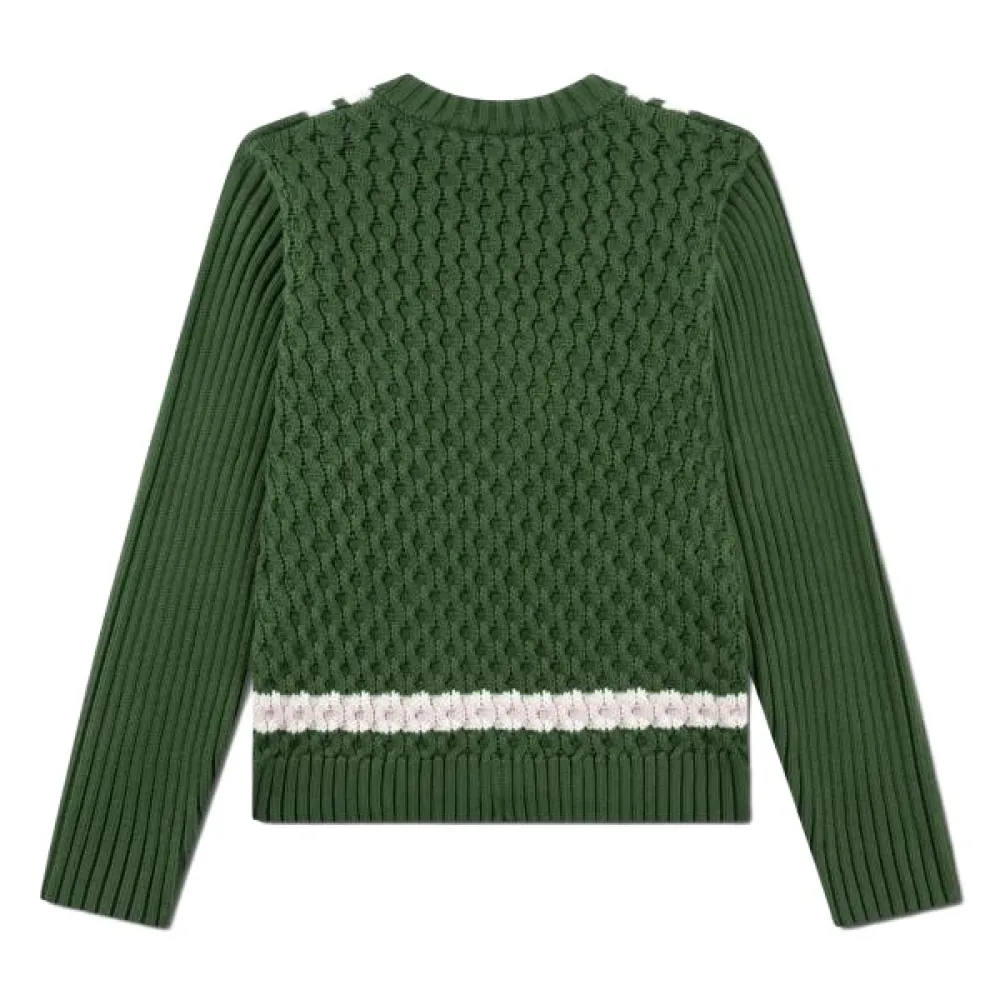 Свитер Lacoste в классическом теннисном стиле с контрастными полосками выполнен из пряжи из смеси органического хлопка и шерсти.