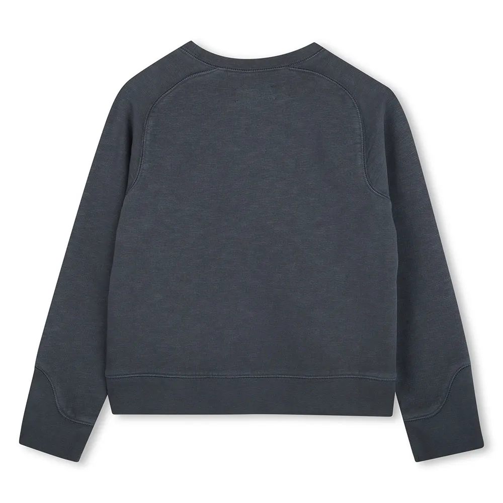 Свитшот из хлопка Heather, необычный крой на проймах и манжетах, разноцветные стразы цвета 033, принт со стразами цвета 46Q, обработка краской для одежды, вдохновленная.