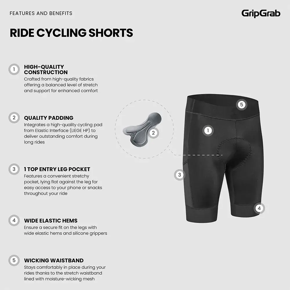 Велосипедные шорты GripGrab RIDE, изготовленные из высококачественной эластичной полиамидной ткани с защитой от солнца UPF50+, являются незаменимой вещью для велосипедистов, обеспечивая мягкую поддерживающую посадку для оптимального комфорта.