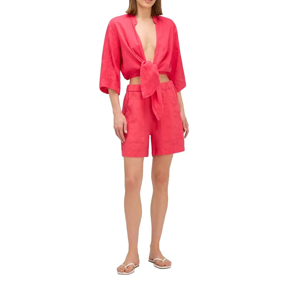 Шорты Sundek Stretch-waist linen shorts, розовый