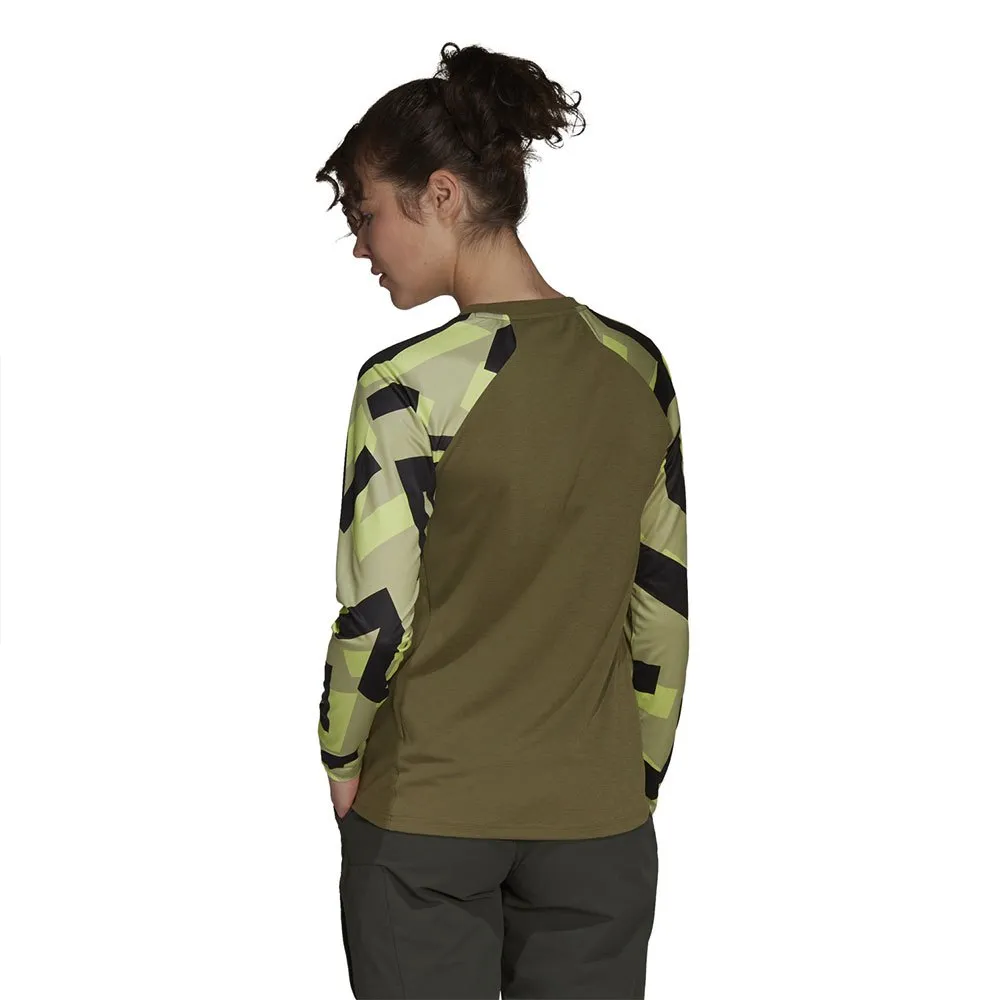 Зафиксируйте свой стиль катания, который поможет вам в любой ситуации. Эта легкая футболка adidas с длинными рукавами защитит вас от солнца и грязи. Принт Five Ten подарит вам заряд бодрости во время езды на велосипеде. Влагопоглощающая модель AEROREADY позволит вам вернуться к машине в сухости и комфорте.