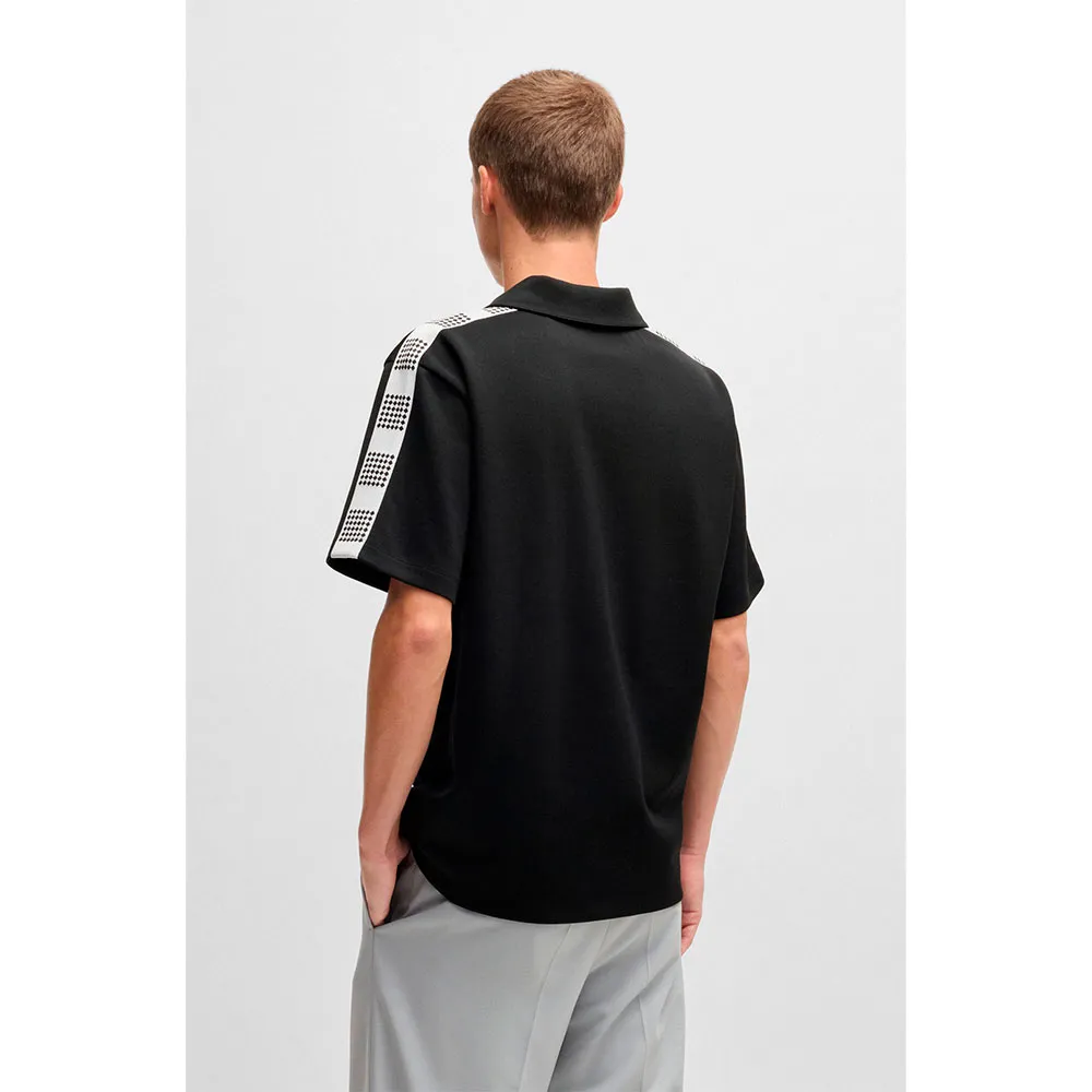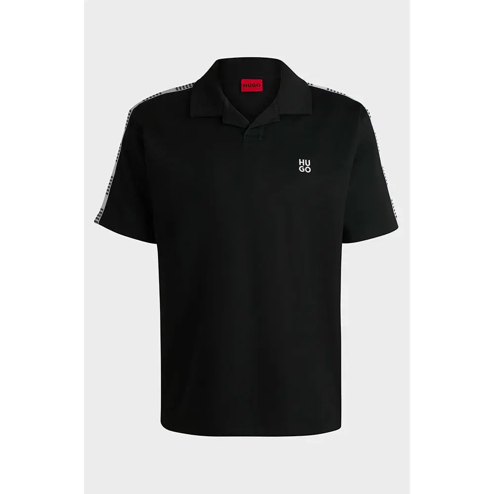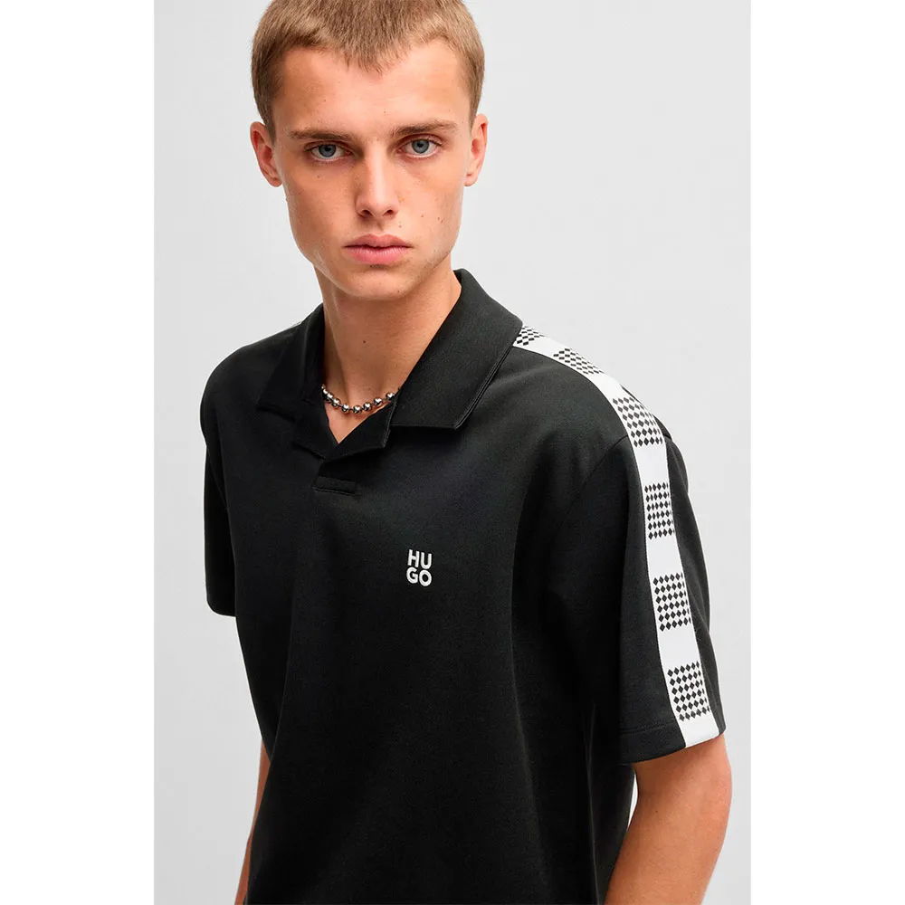 Мужская рубашка-поло HUGO в винтажном стиле с клетчатой тесьмой свободного покроя. Из хлопка с чистой планкой в обтяжку.