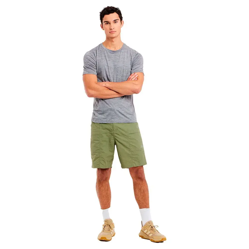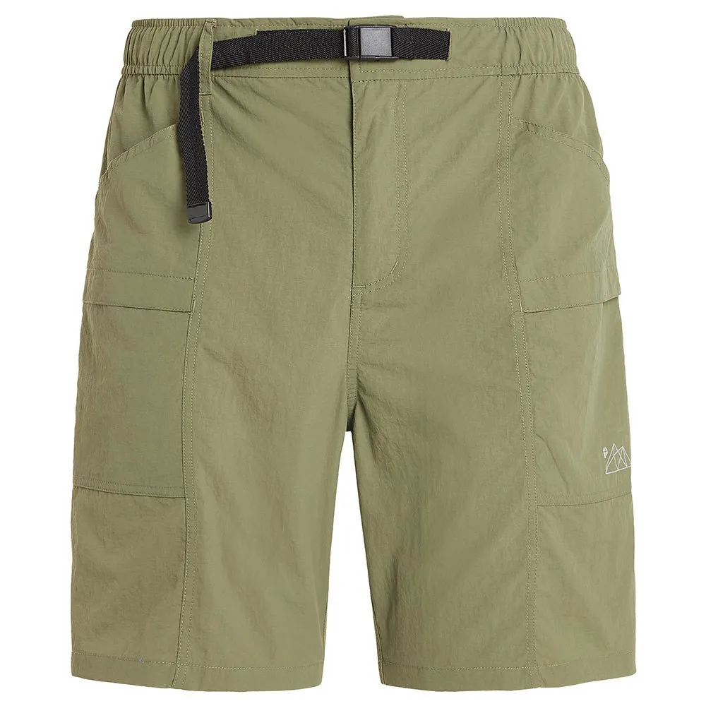 Не содержит PFC, цвет PVRE зеленый, Переработанный материал, Обычная посадка, Выше колена, Эластичный пояс, Обычная талия, Задний карман, накладной карман, боковой карман, кнопки, застежка на пояс.
