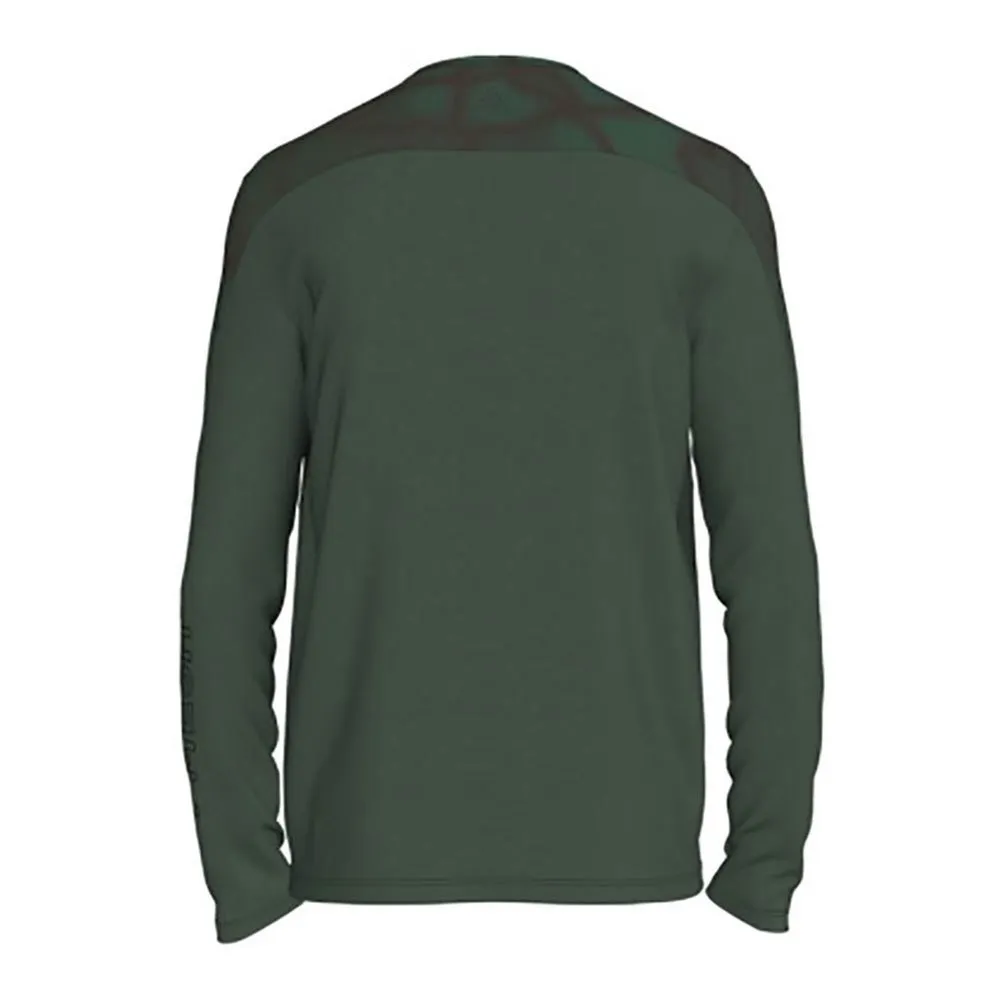 Roam Long Sleeve имеет более текстурированную и тяжелую структуру, чем Sight, но сохраняет прохладу благодаря открытой структуре ткани, которая обеспечивает циркуляцию воздуха вдоль текстурированной подкладки, предотвращая прилипание.