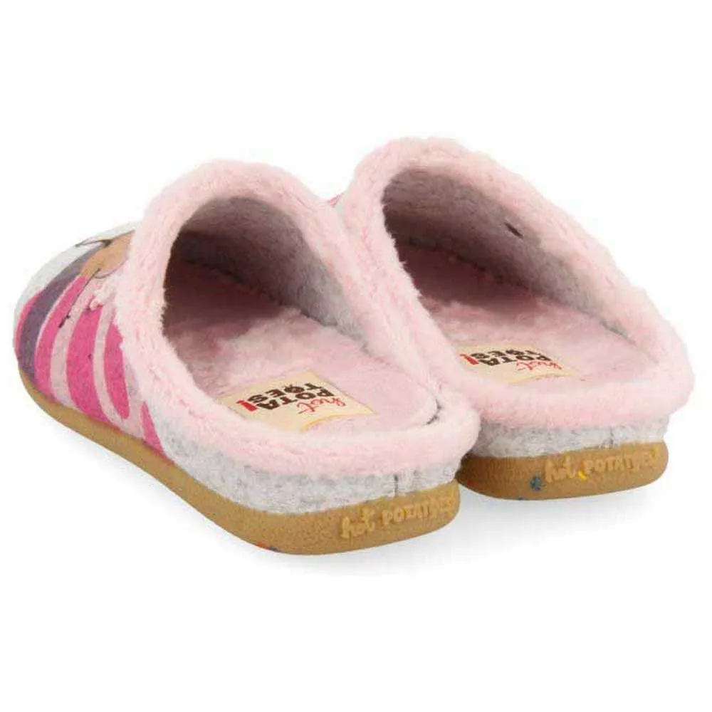 Самые маленькие в доме тоже обожают горячую картошку! Детские тапочки с нашим знаменитым картофелем в космическом стиле. Верх из переработанного ПЭТ. Съемная стелька из 100% переработанного полиуретана. Подошва из натурального каучука. Самые экологичные тапочки - в Hot Potatoes.
