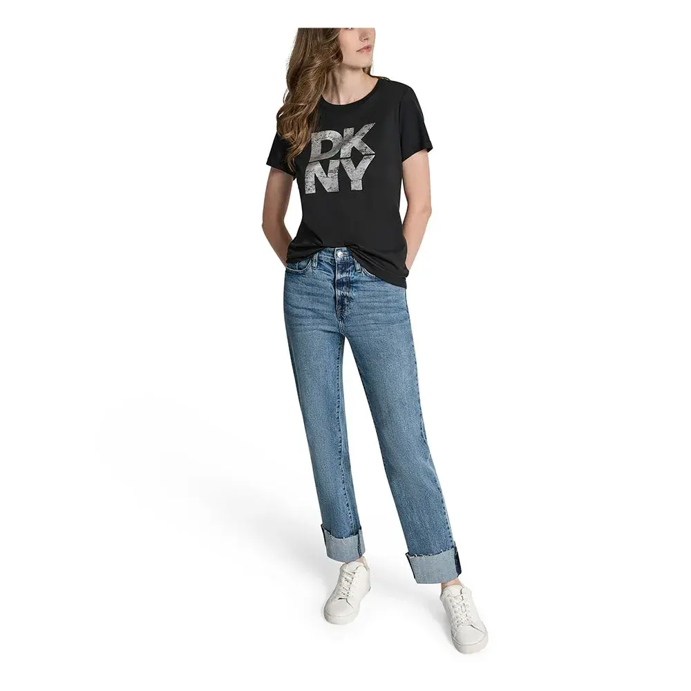 Дополните свой повседневный гардероб футболкой DKNY Distressed Stac - шедевром повседневной утонченности, созданным для современной женщины. Это не просто очередная футболка; Это украшение-заявление, которое идеально передает энергичный городской дух Нью-Йорка. Этой футболке, тщательно созданной для сочетания непринужденного комфорта с чувством высокой моды, суждено стать самой универсальной и желанной вещью в вашем гардеробе. Его уникальный дизайн предлагает современный взгляд на неподвластную времени классику, что делает его идеальной основой для множества стильных образов.