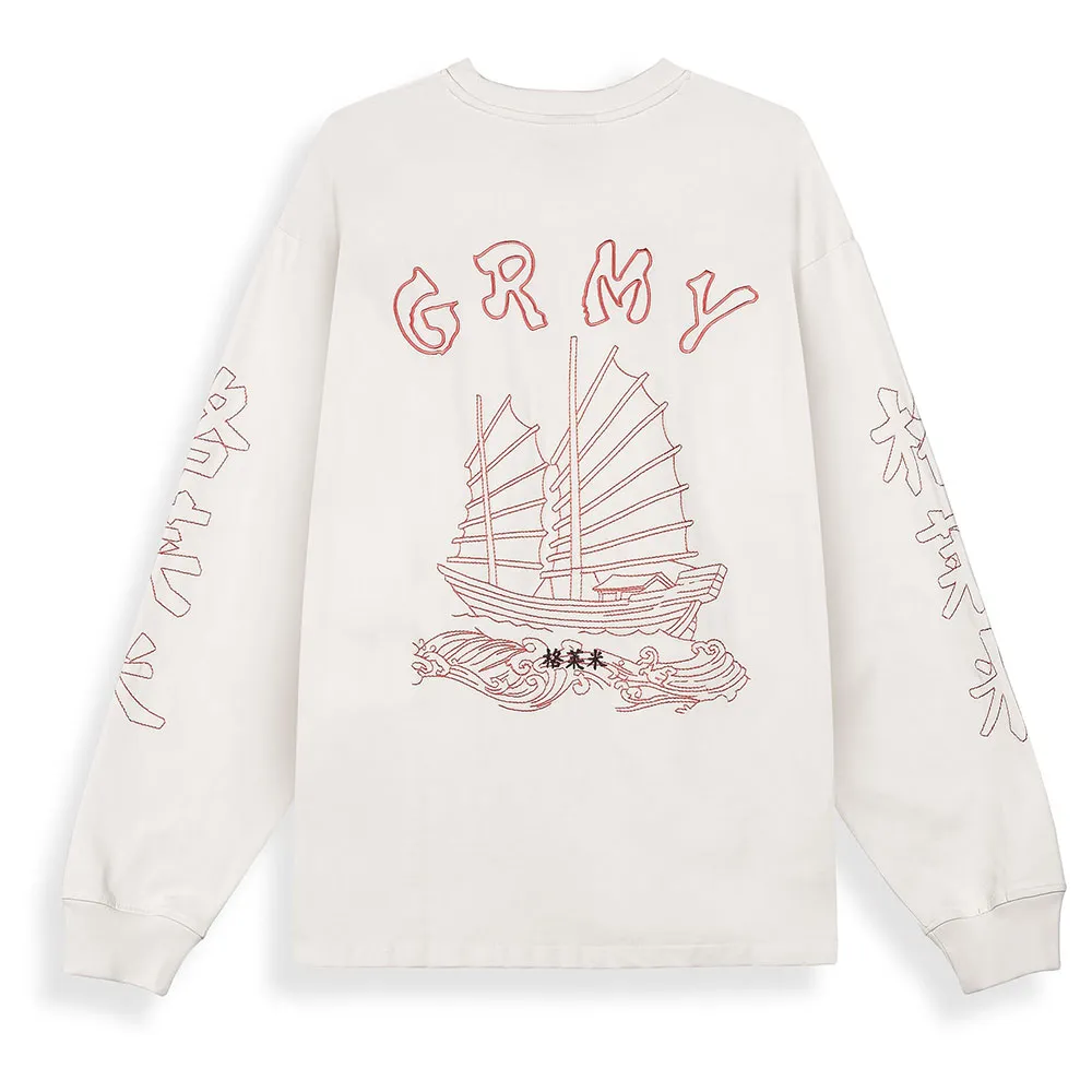Украсьте свою коллекцию уличной одежды футболкой GRIMEY Sampans Lords с длинным рукавом - шедевром городского стиля и графической выразительности. Созданная для тех, кто осмеливается выделяться, эта футболка - больше, чем просто одежда; это заявление. Черпая вдохновение в богатой палитре азиатской культуры и морских знаний, дизайн "Sampans Lords" превращает классический силуэт в произведение искусства, пригодное для носки, что делает его незаменимым элементом любого перспективного гардероба.