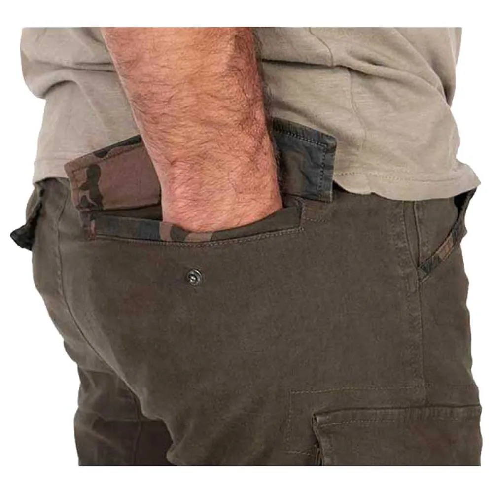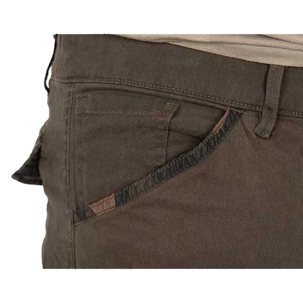 - Частично эластичная талия со шлевками для ремня и застежкой на пуговицы