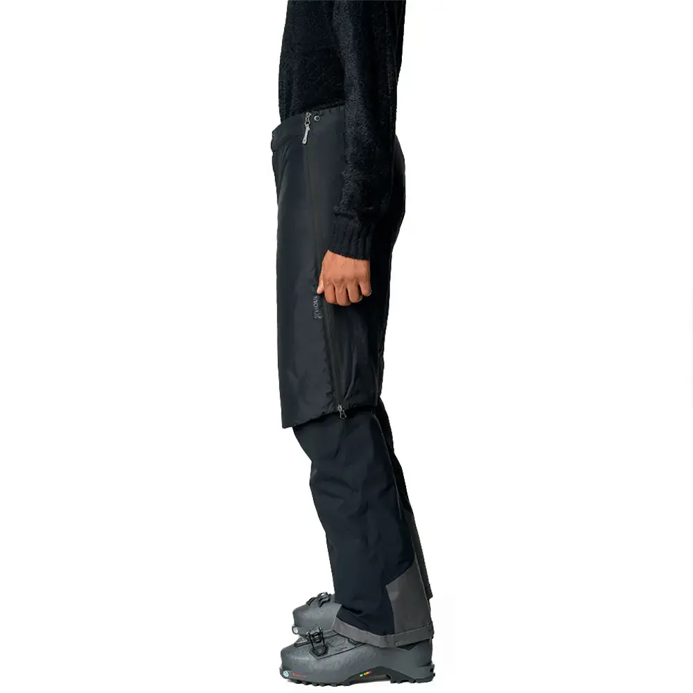 Конструкция с боковыми молниями по всей длине и прочным лицевым материалом предназначена для ношения поверх брюк для обеспечения дополнительного тепла во время частых стартов и остановок, таких как ски-туринг или скалолазание/страховка.