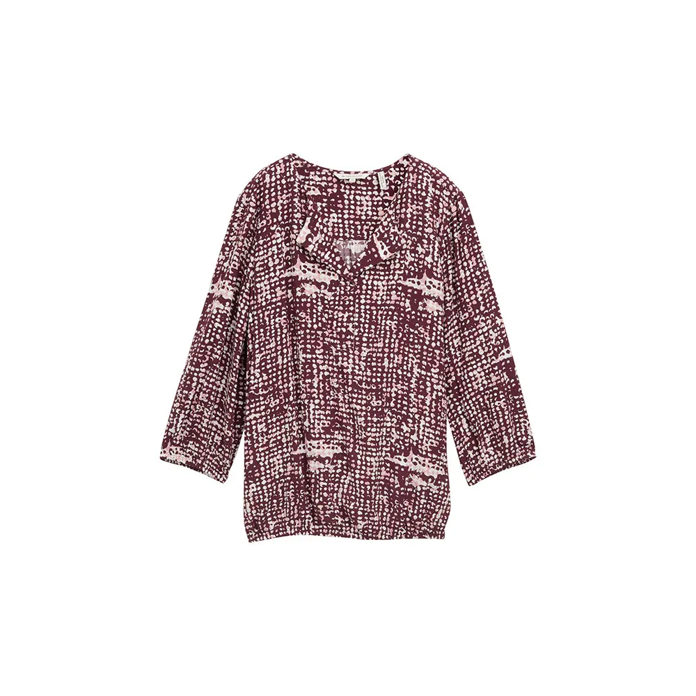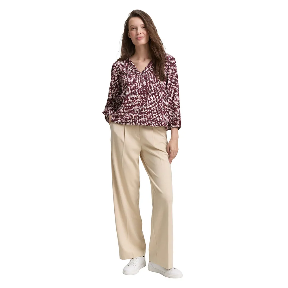 Блузка из вискозы с рукавами длиной 3/4 и V-образным вырезом.