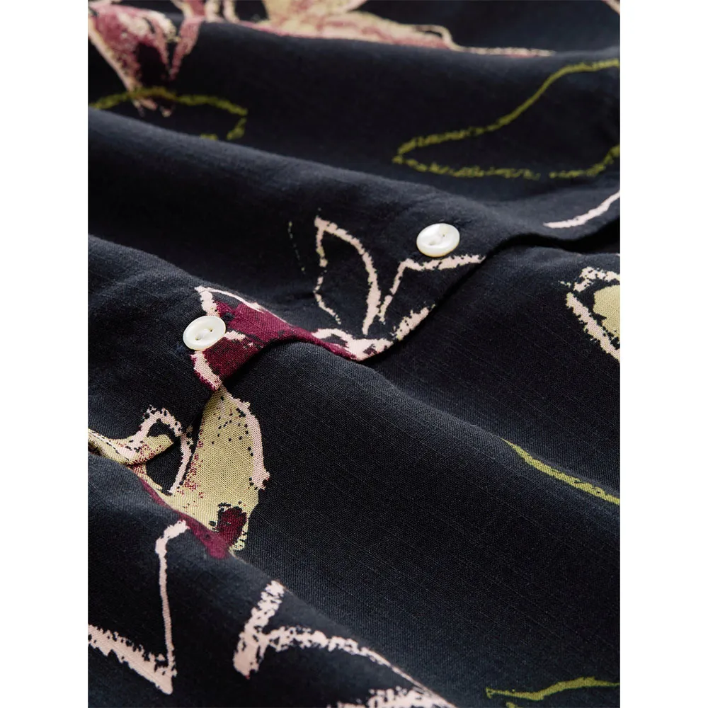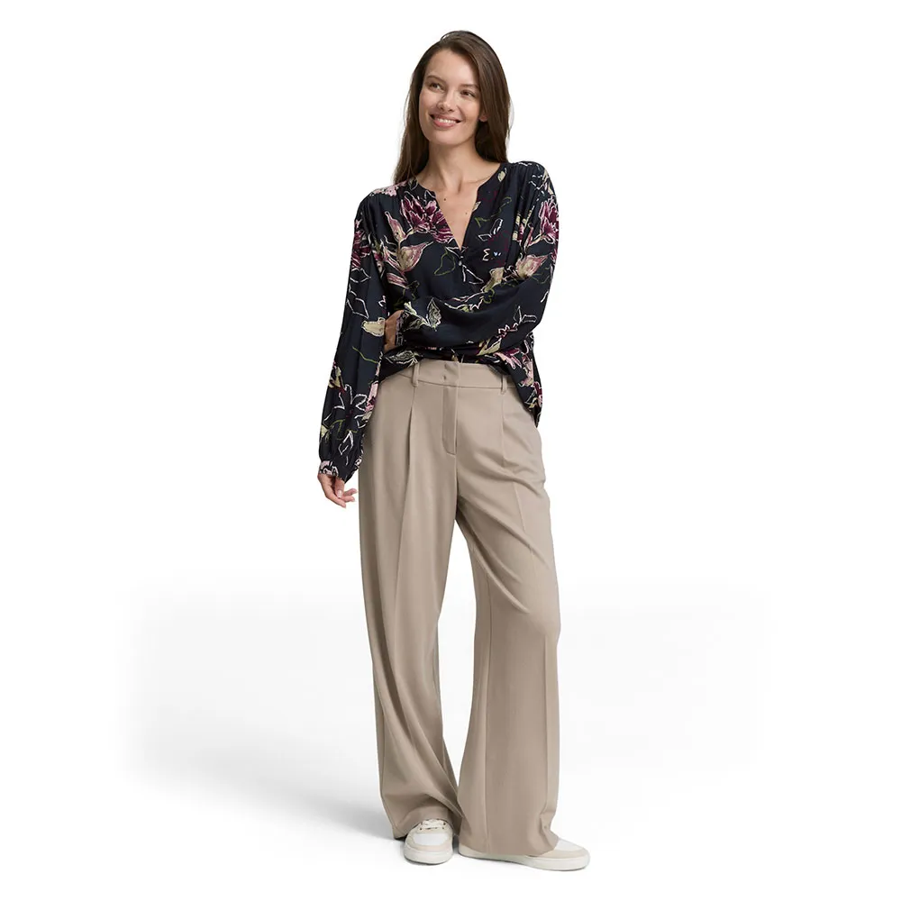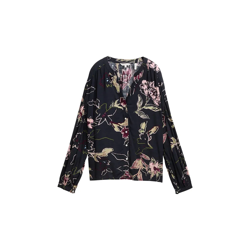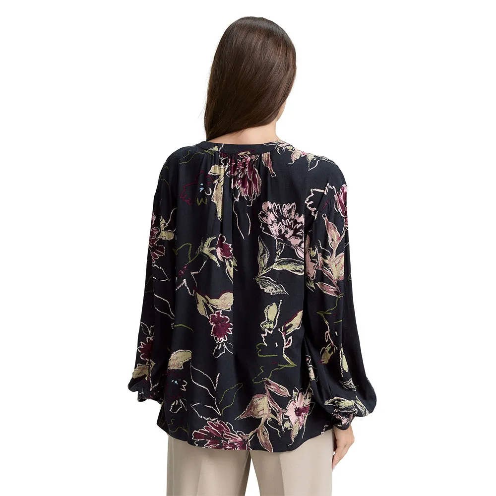 Блузка из вискозы свободного покроя с рисунком, легкой сборкой и V-образным вырезом.